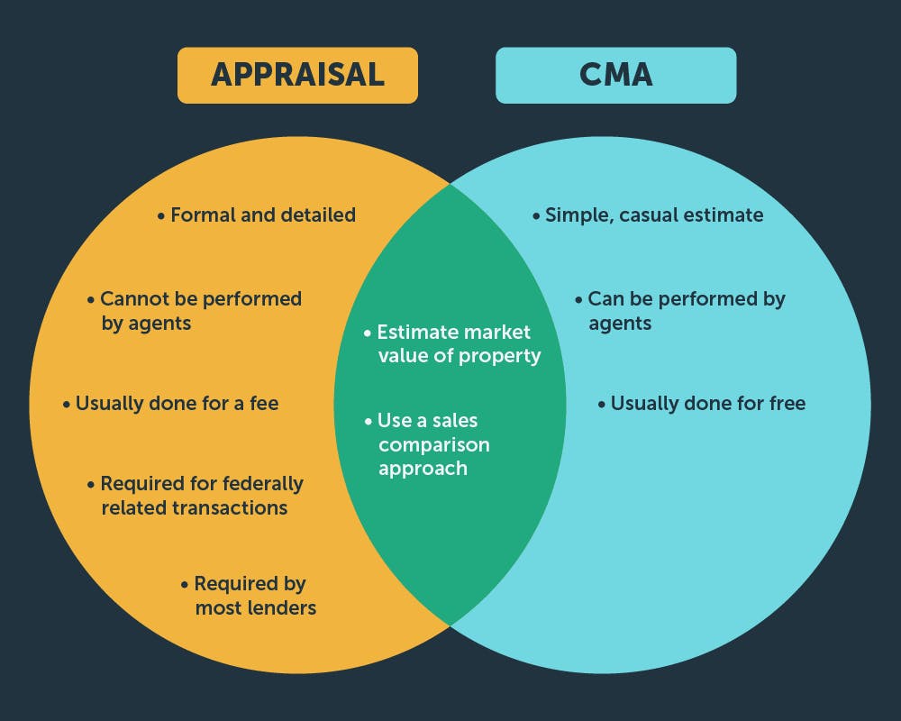 If you think that sounds like a comparative market analysis (or CMA), you're not wrong! They are similar processes, but there are a few differences. Check out this chart: